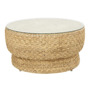 Tightly handwoven of natural rattan, the earthy Yuscaran coffee table features a tapered round silhouette and a clear surface of tempered glass. Its mixed-material design table adds rustic warmth and texture to living rooms of all sizes. Naturally neutral to suit any decor, this coffee table complements the inviting organic form of its rattan frame…