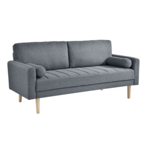 Kick back in contemporary style on our Espinoza sofa, designed for both comfort and a clean-lined look. It includes rounded armrests, two bolster pillows, and a blend of high-density foam and premium coils inside for supreme relaxation. Complete with tapered wood legs, a channel-tufted bench seat, and neutral gray upholstery, this compact couch is sleek…