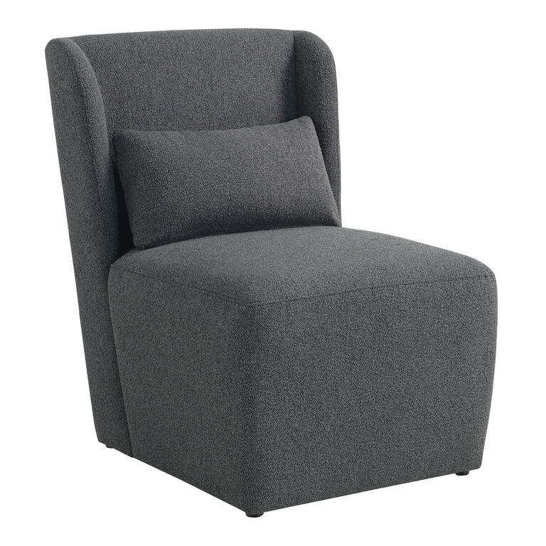 Fully upholstered in nubbly boucle fabric with a subtle wingback, the Arjun contemporary lounge chair is an invitation to indulge in luxurious comfort. Crafted with a durable hardwood frame, high-density foam filling and springy pocket coils, this wide armless seat comes complete with a long lumbar pillow. A stylish take on minimalist Scandi-inspired lounge chairs, Arjun complements modern decor in your choice of sophisticated neutral colors.