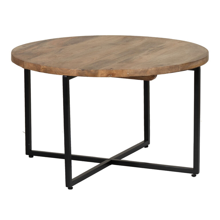 Tristan Round Wood and Black Metal Coffee Table